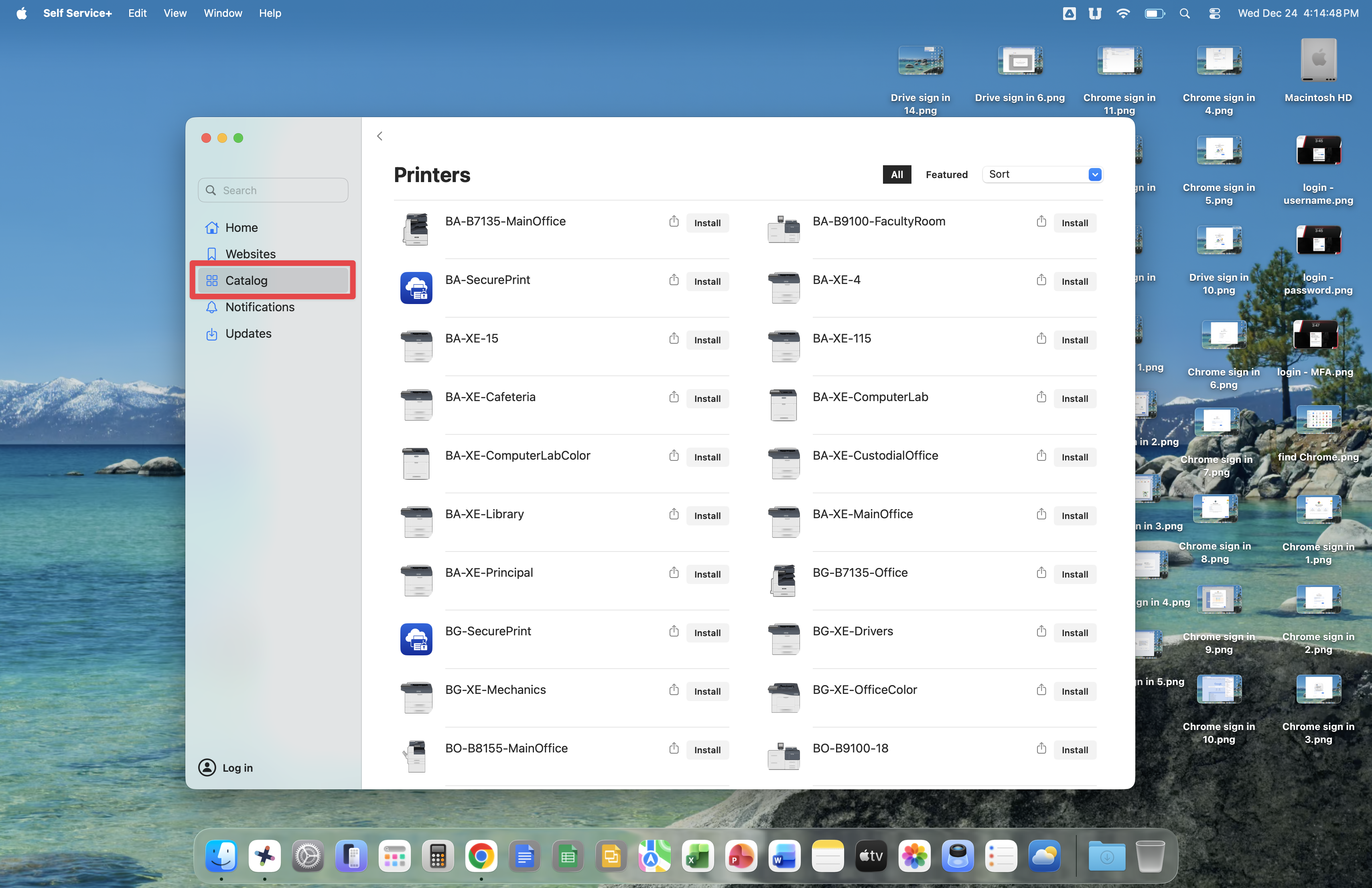 We will explore Self Service+ next. This app allows you to install printers and other software made available by the Technology Department.