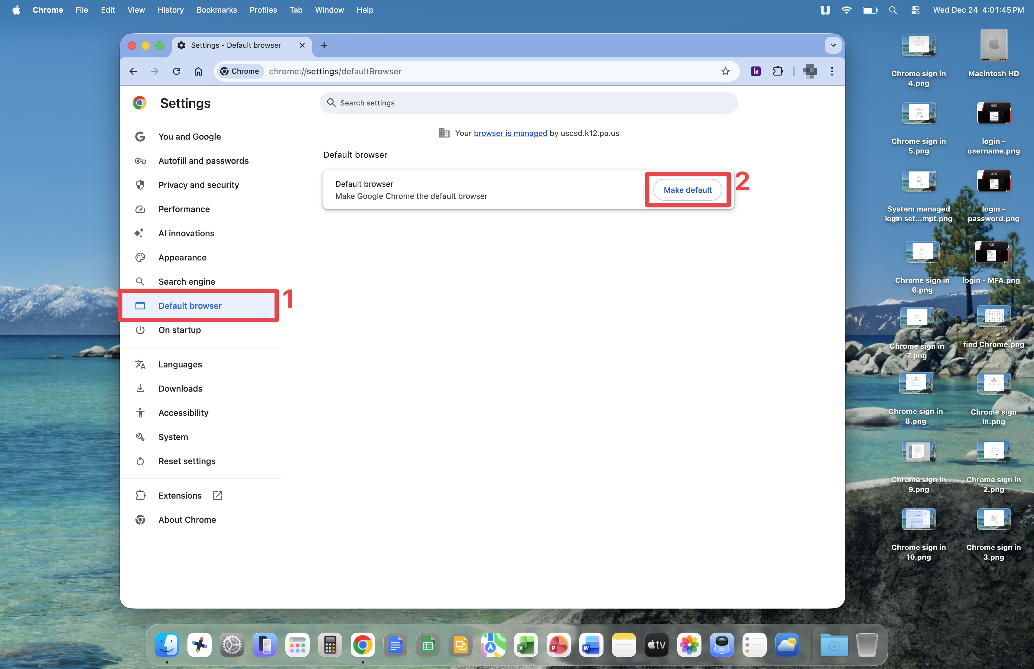 It is suggested that you make Google Chrome the default web browser on your Mac. You are welcome to use the Safari web browser, but note that Google Chrome is managed by the USC Technology Department, giving you quick access to applications and web sites, as well as keeping Google Chrome updated automatically.