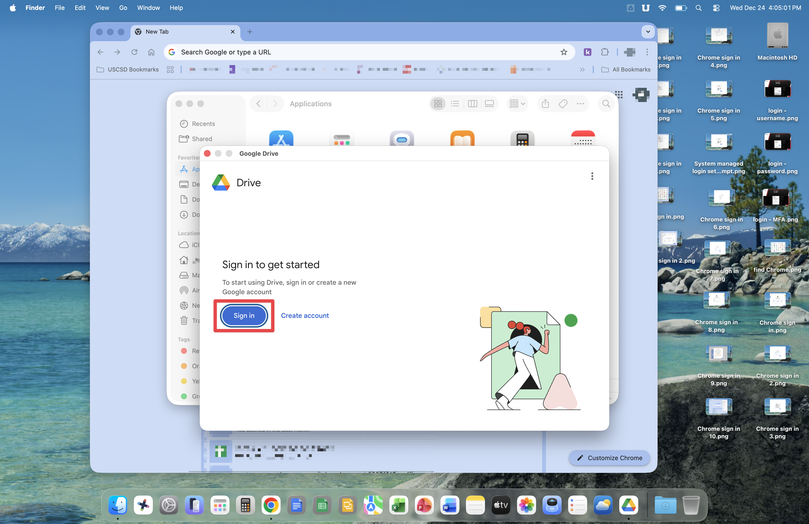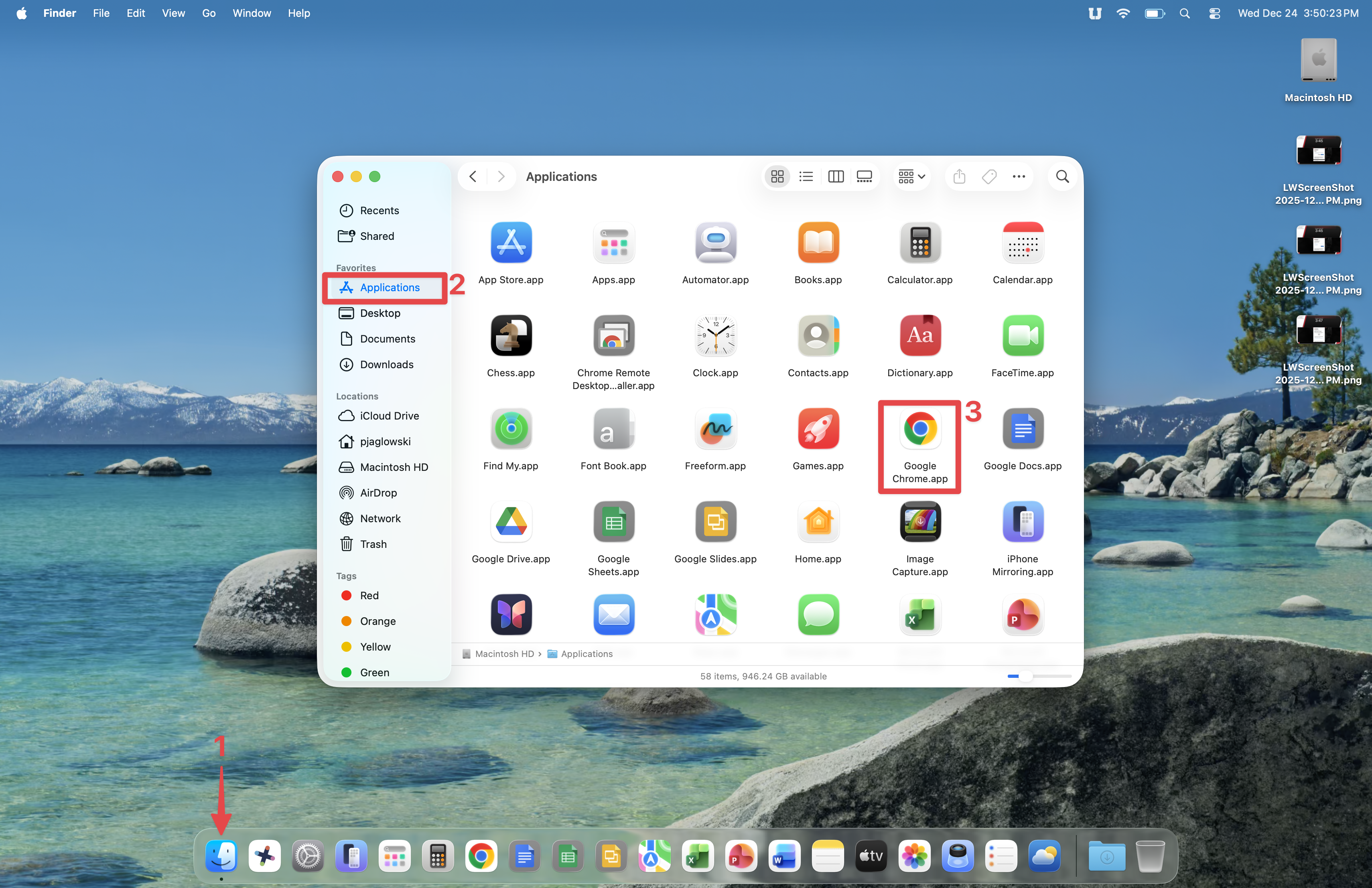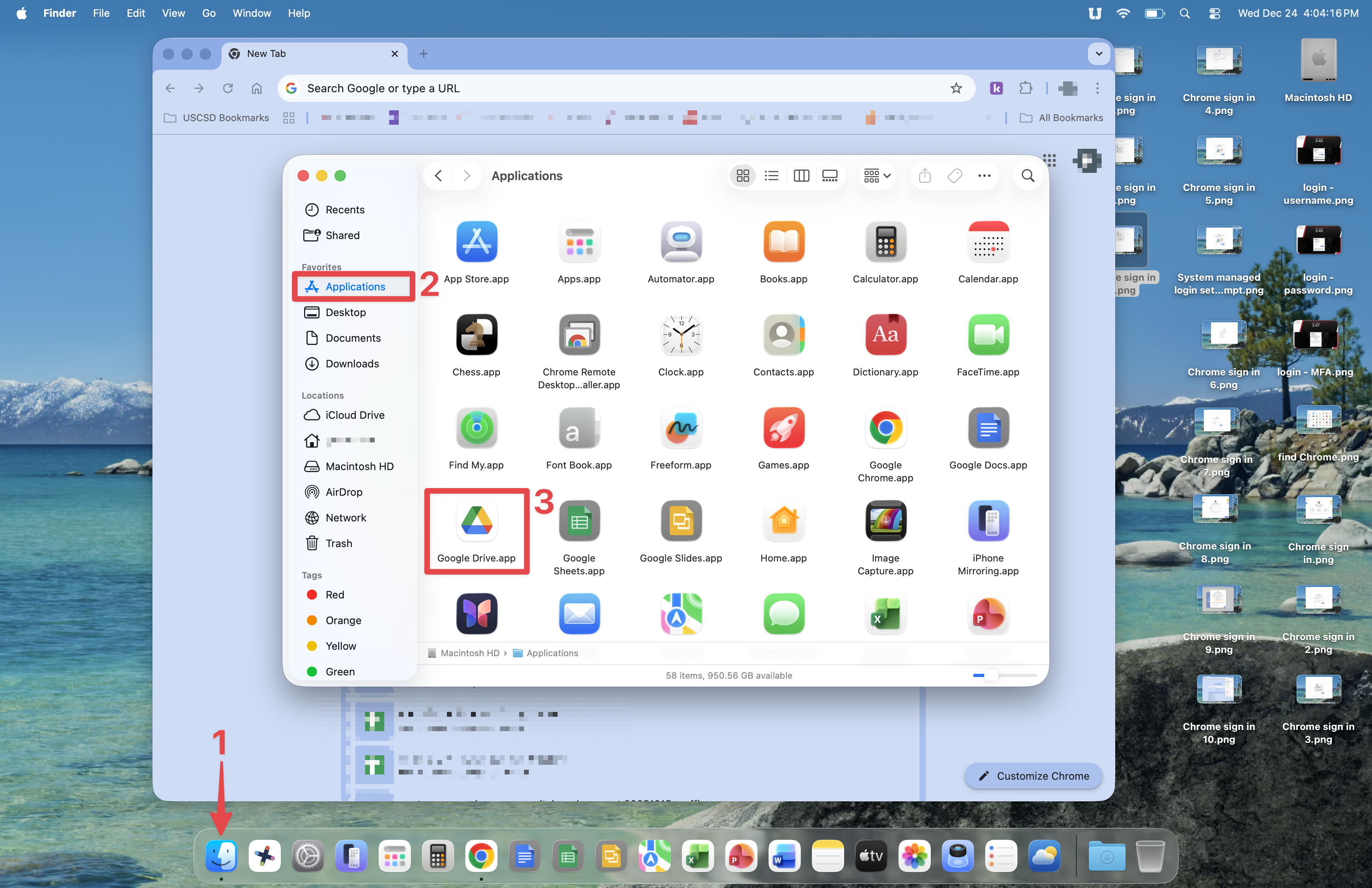 Now, you'll open Google Chrome and set it up. Open the Finder, go to Applications, then double-click the Google Chrome icon.