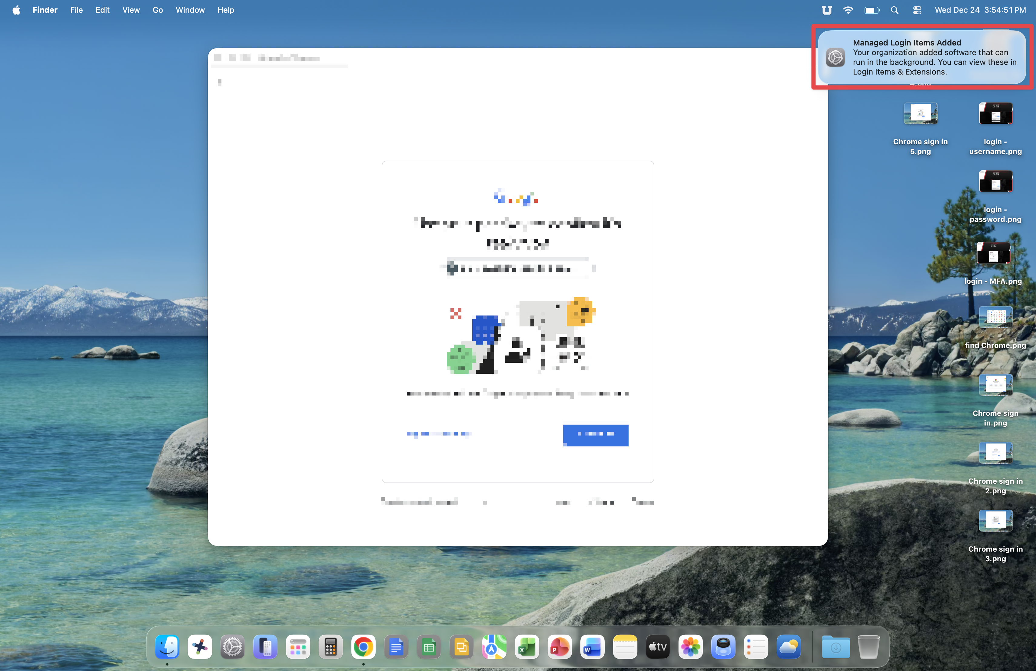 Please note that during the setup of your Mac, you will encounter messages informing you of software being added and configured automatically.