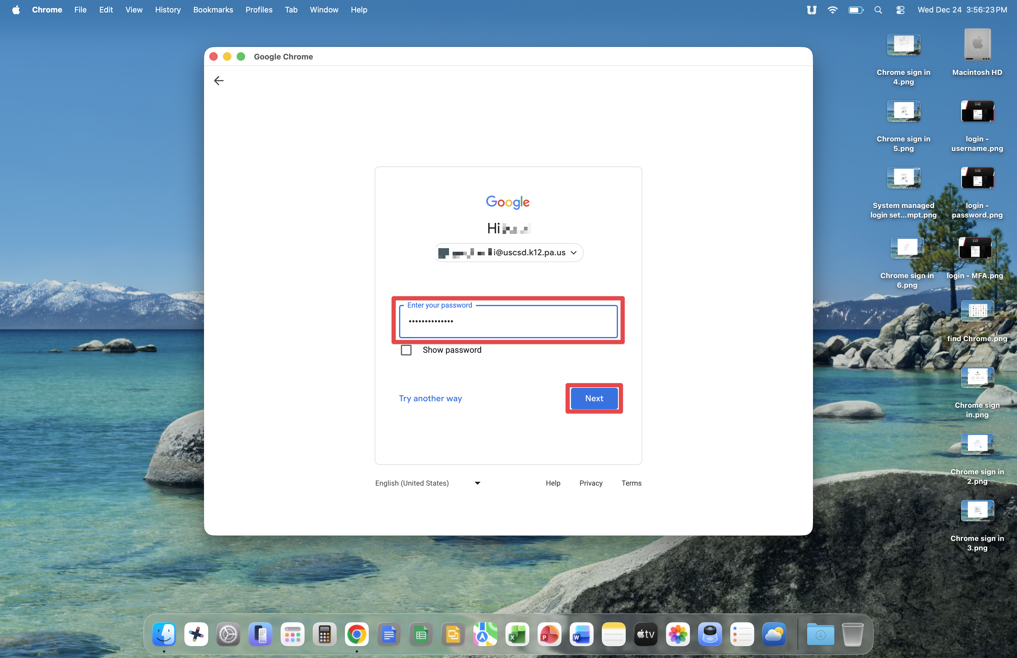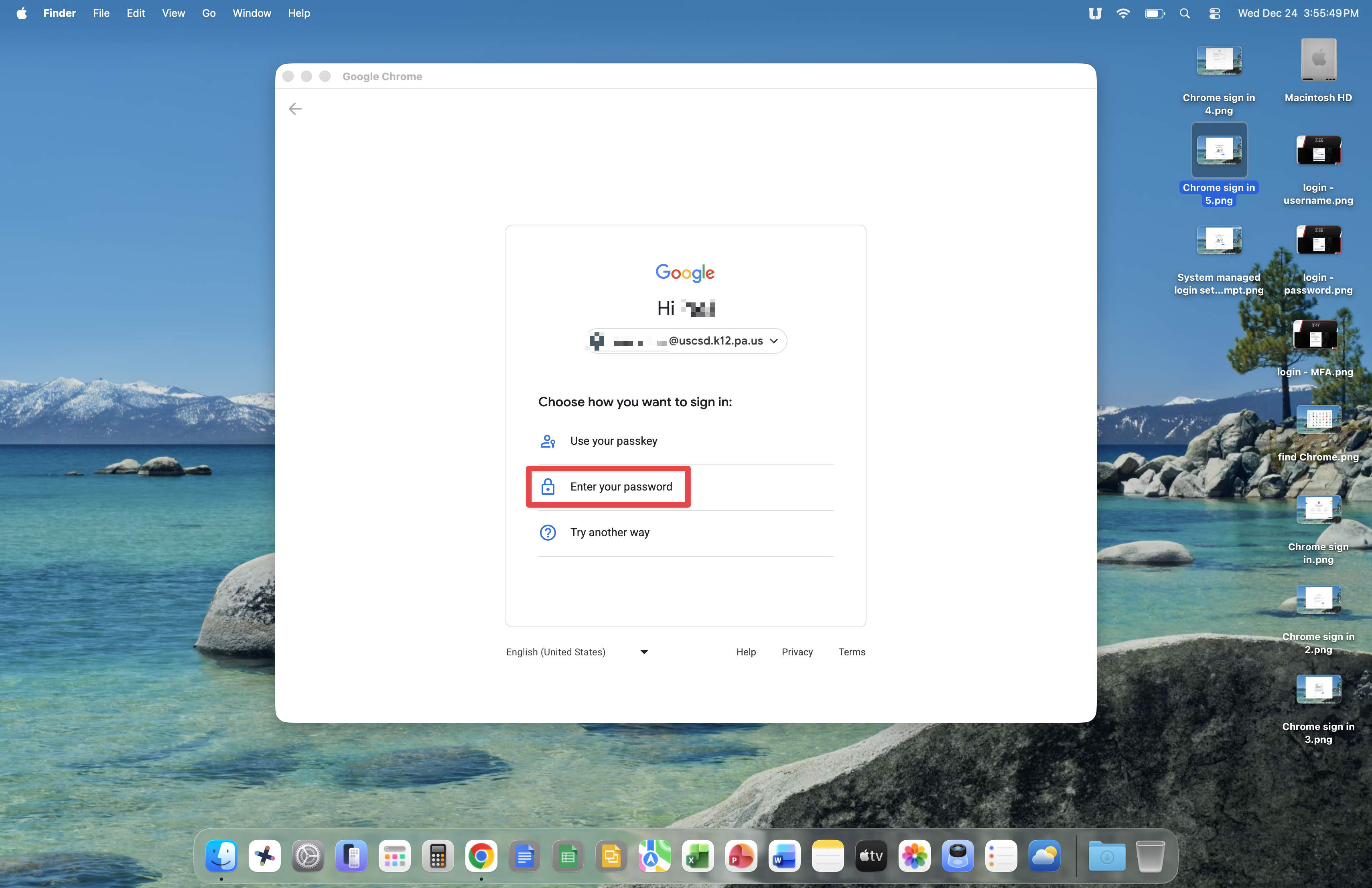 Google Chrome will ask how you would like to log in. Click Enter your password.