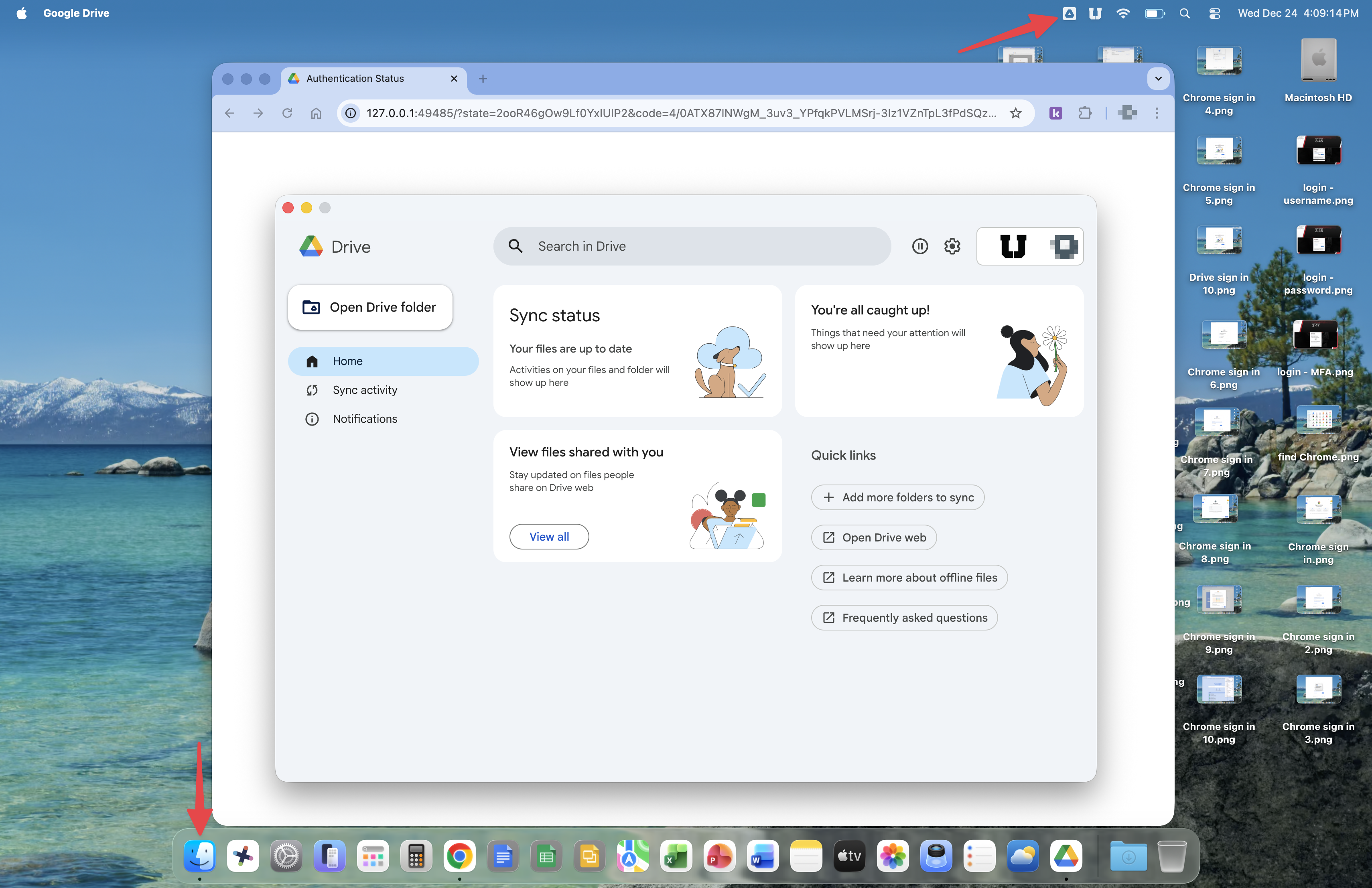 Around this time, you will encounter the You're helping improve Drive for Desktop message. Click the Dismiss button to close this prompt.