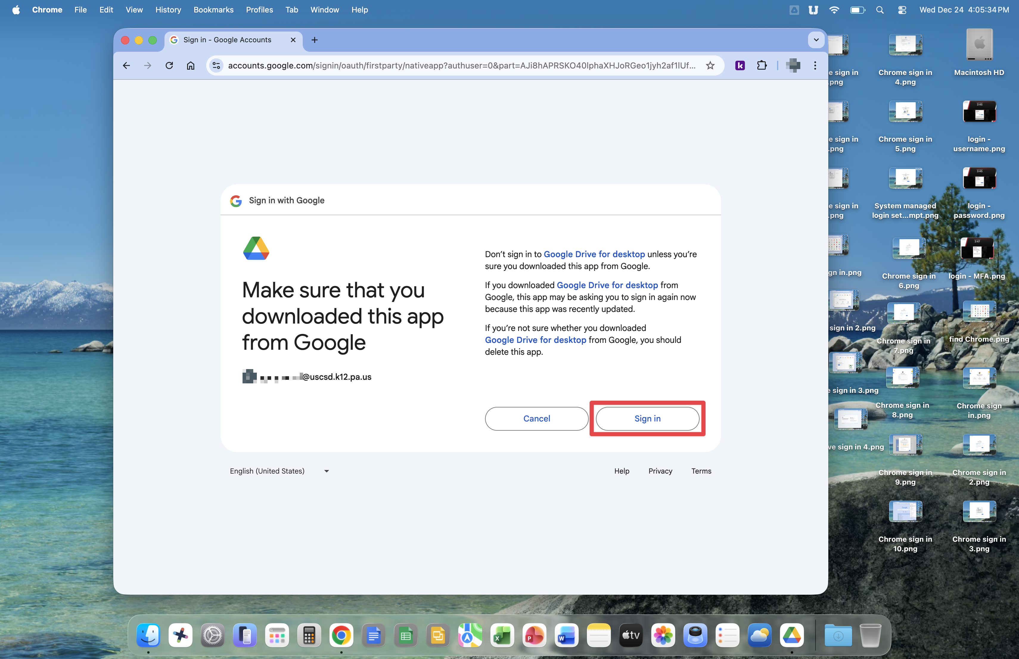 Click Sign in at the Make sure you downloaded this app from Google window.
