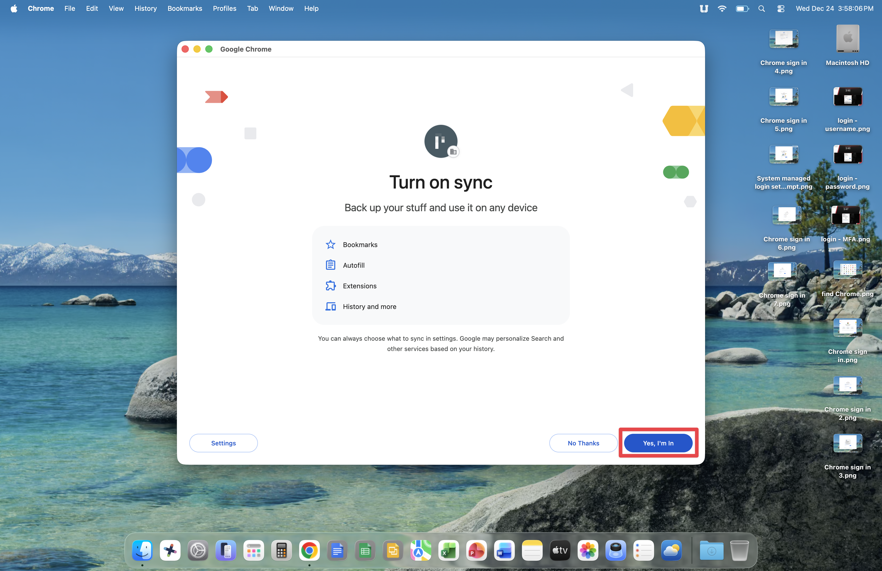 Click the Yes, I'm in button.