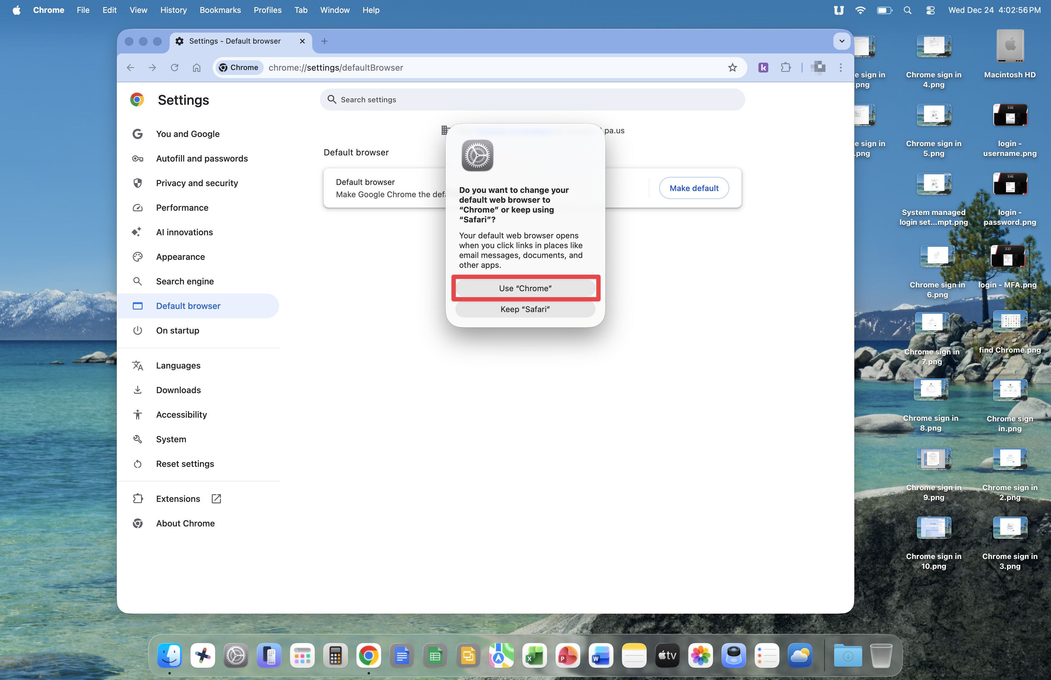 Your Mac will ask again if you want to make Chrome the default browser. Click the Use "Chrome" button.