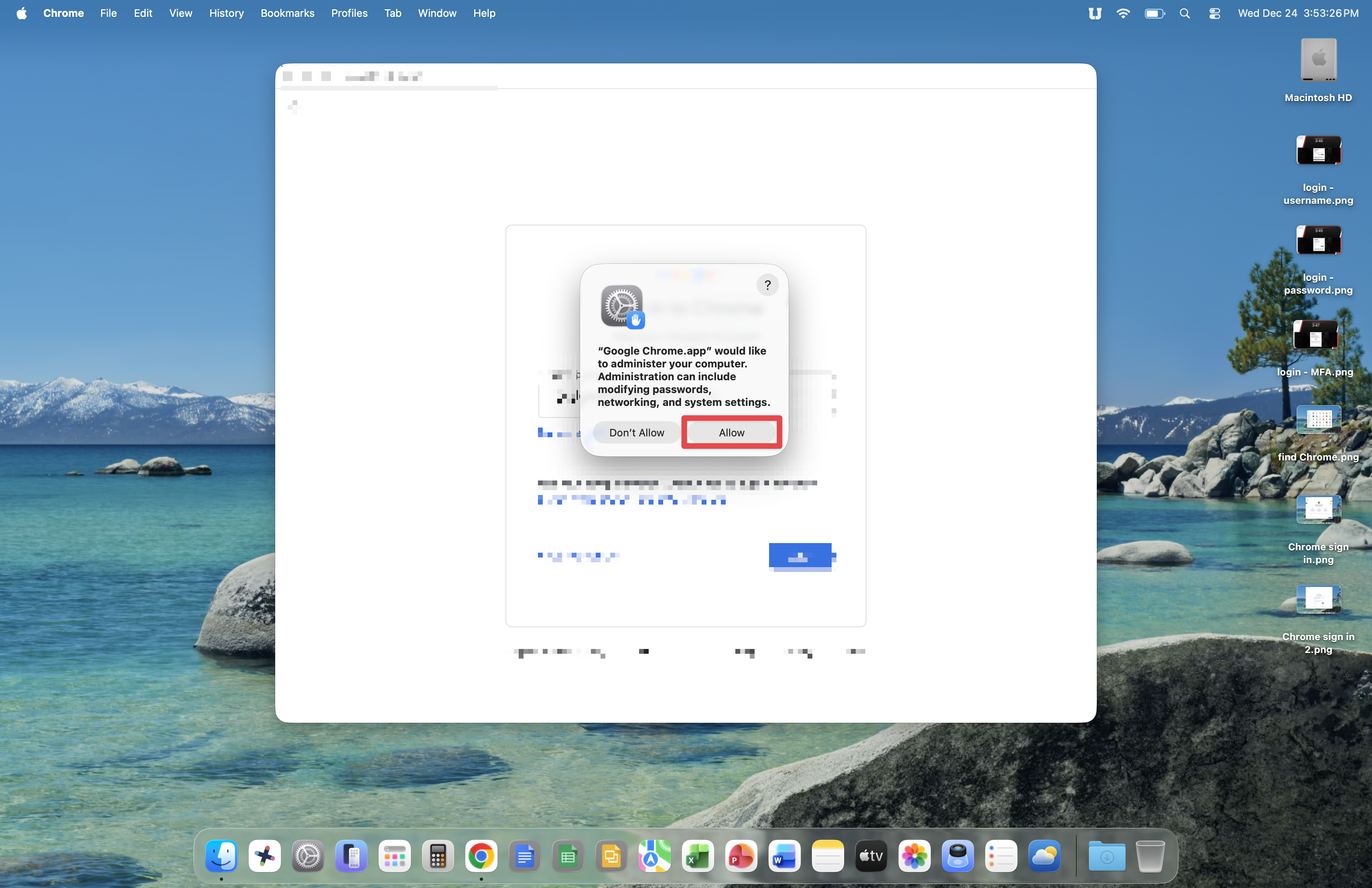 At this point, you may encounter a prompt asking if you'd like to allow Google Chrome to administer your computer. Click the Allow button at this prompt.