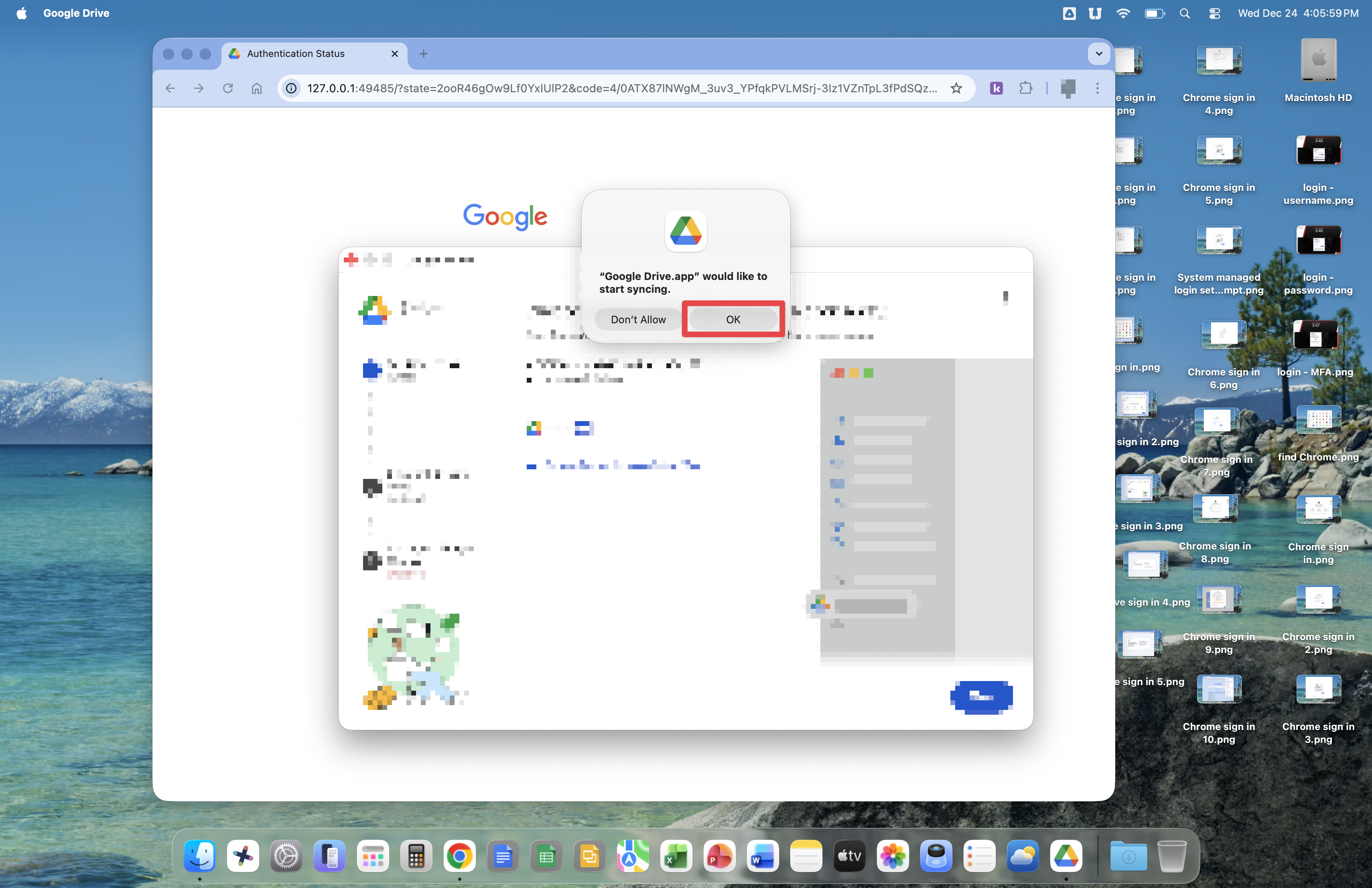 A prompt stating that Google Drive would like to start syncing will appear. Click the OK button.