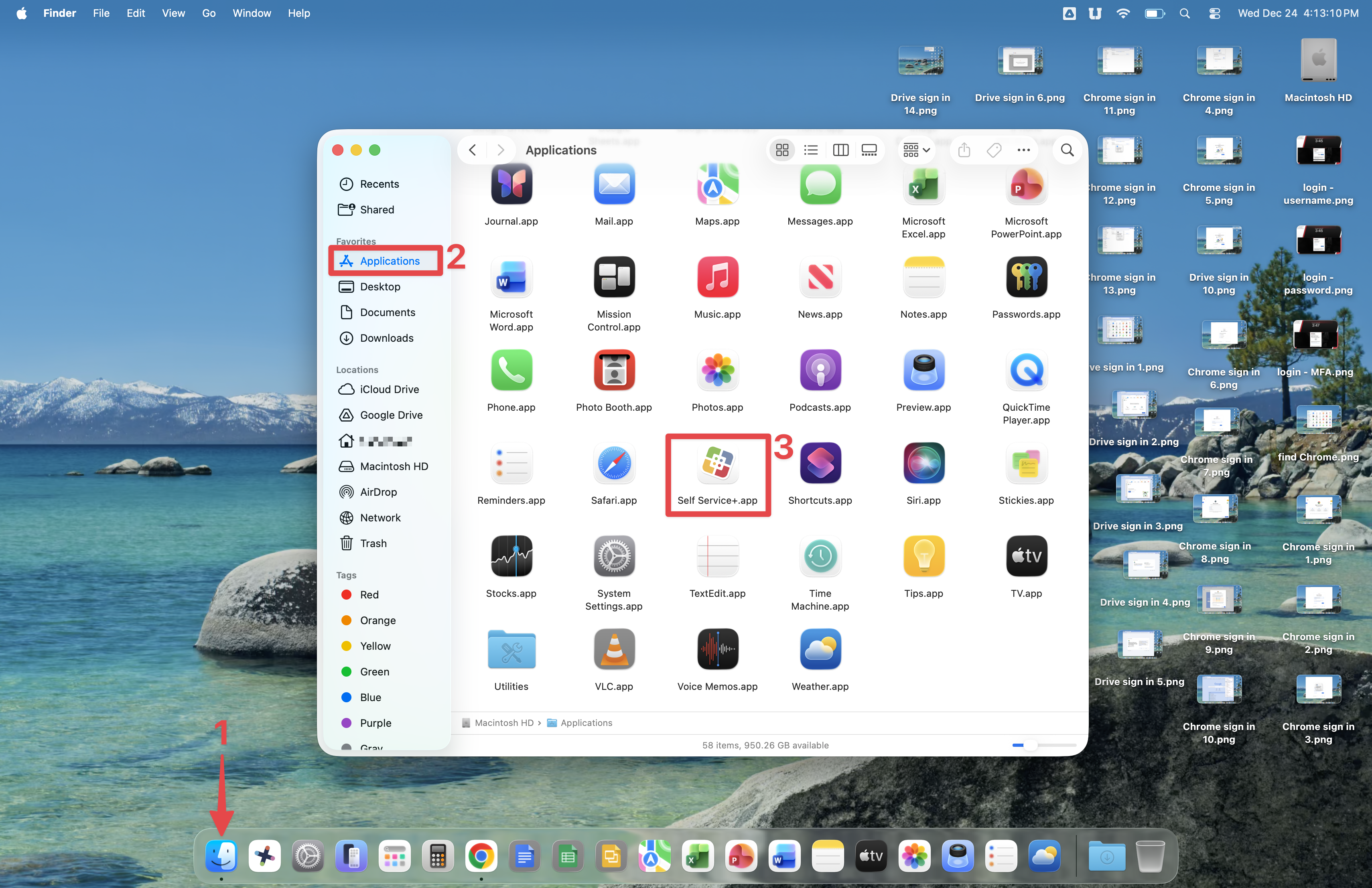 Open Finder and click Applications, then scroll down and double-click the Self Service+ icon.