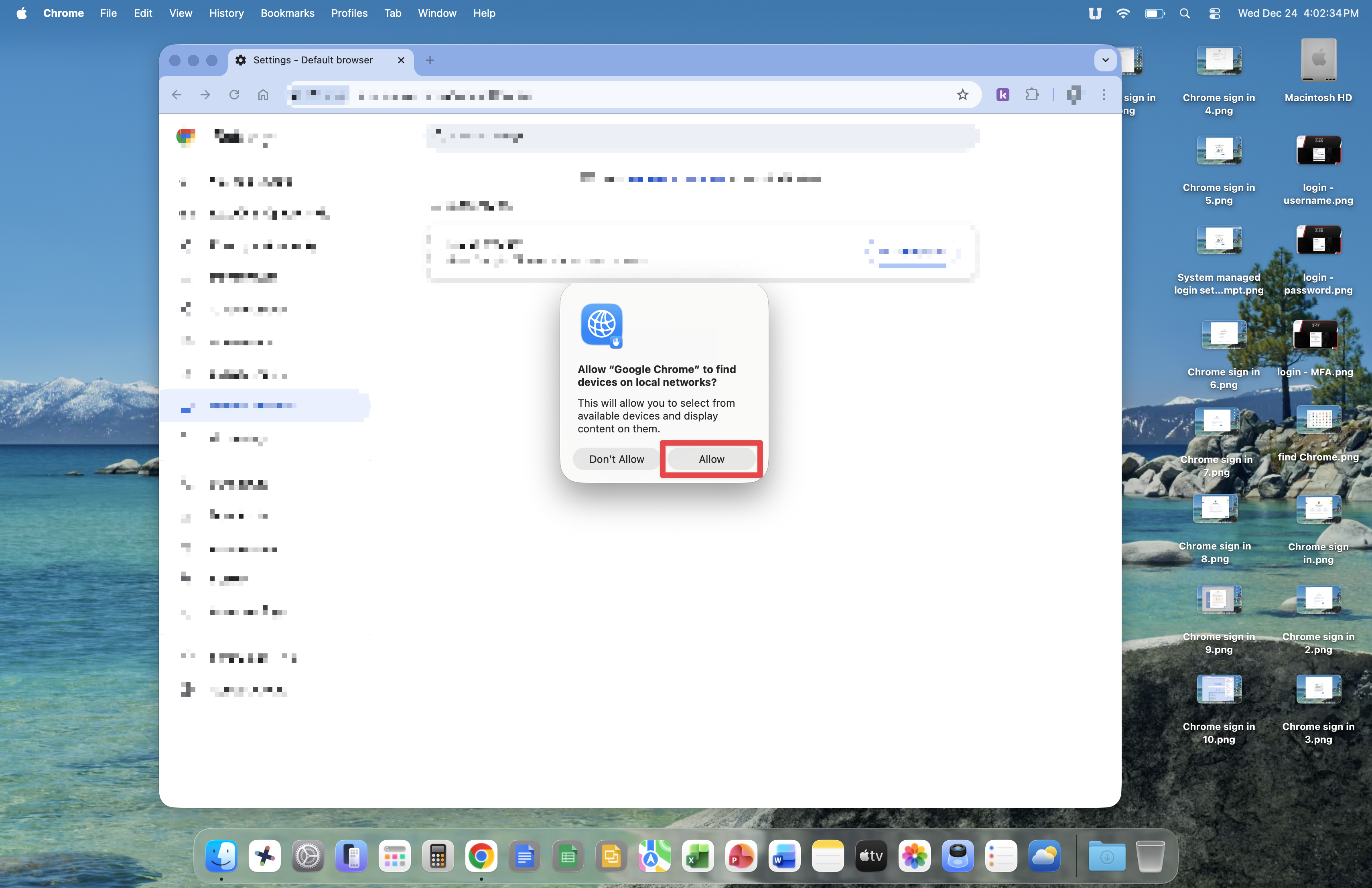 Around this point, you may encounter a message asking if Google Chrome can find devices on local networks. Click the Allow button and continue.