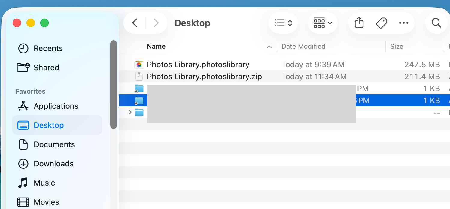 When the process is complete, you will see a file named “Photos Library.photoslibrary” on your Desktop.