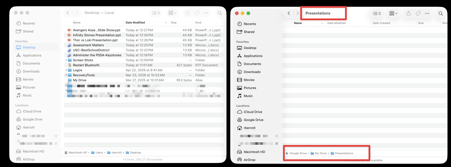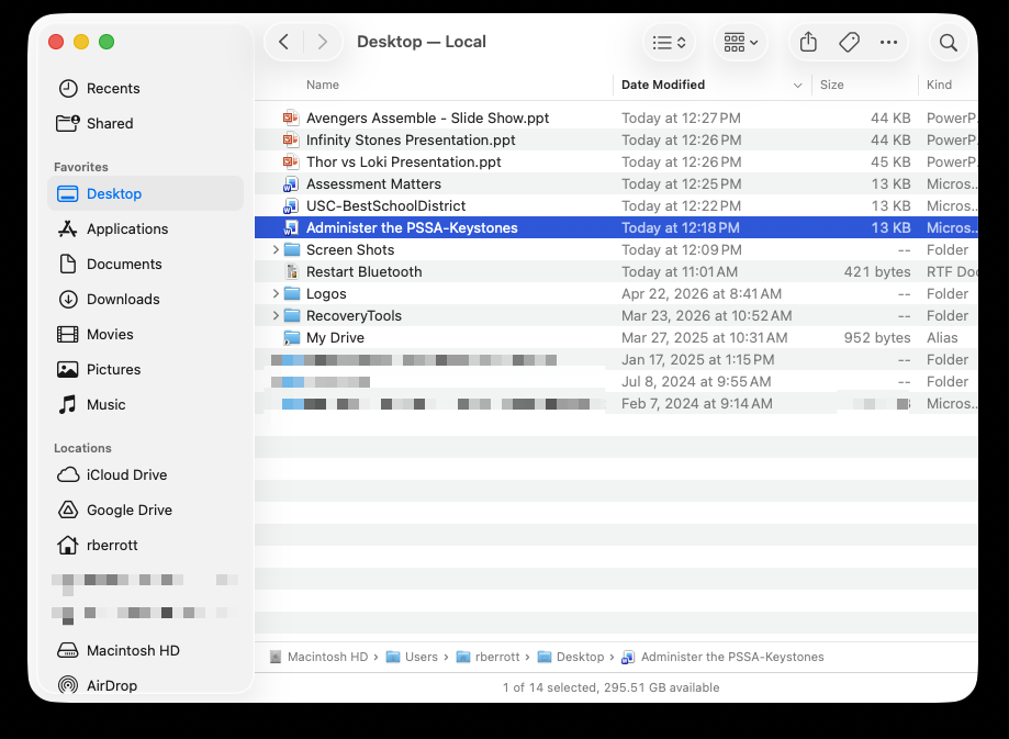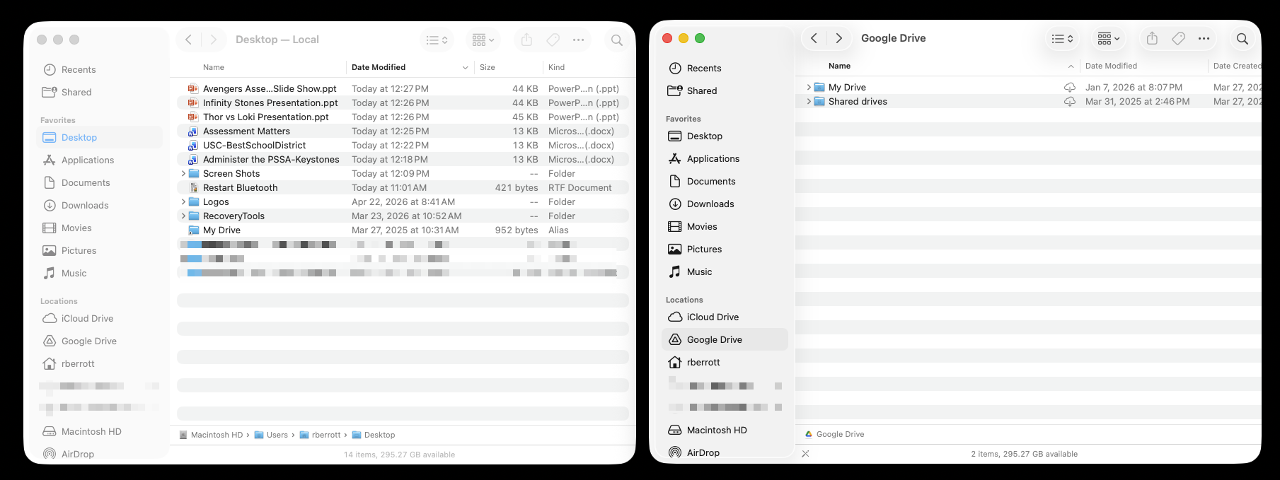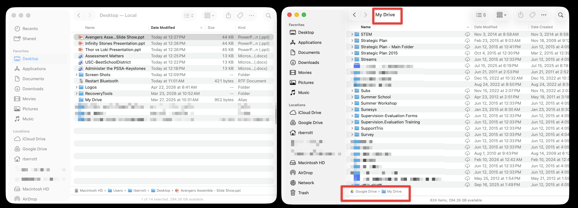 Do not store files on your Mac Desktop or in the Documents folder. All files should be stored and accessed through Google Drive.